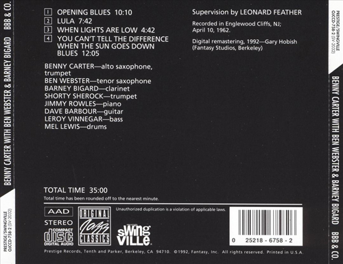 Tracks #7,10: Teddy Edwards, tenor sax; Joe Castro, piano; Leroy Vinnegar, bass; Billy Higgins, drums.