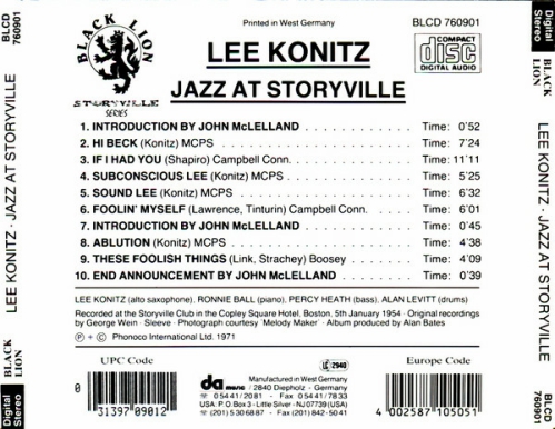LEE KONITZ - At Storyville (1988) FLAC (tracks+.cue), lossless